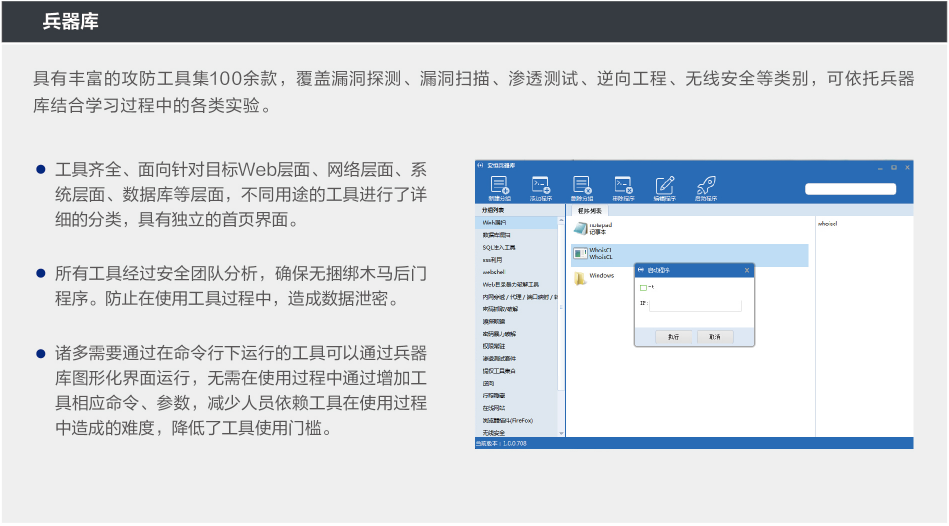 o 具備網(wǎng)絡安全技術專業(yè)理論知識及實戰(zhàn)操作攻防操作技能的培養(yǎng)平臺