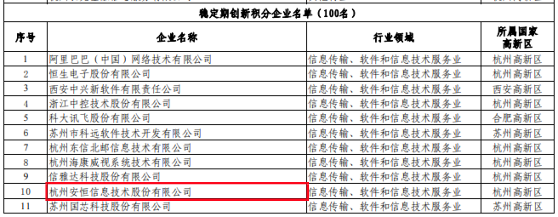 首批試點(diǎn)國(guó)家高新區(qū)創(chuàng)新積分企業(yè)名單出爐,安恒信息名列前茅
