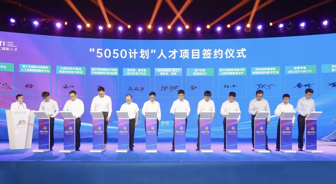 陳健代表高新區(qū)(濱江)與“5050計劃”引進(jìn)的優(yōu)質(zhì)項目進(jìn)行了簽約。今年以來,高新區(qū)(濱江)新引進(jìn)高質(zhì)量人才項目17個,其中10家人才企業(yè)完成超億元大額融資,總額超18.5億元?!?050計劃”是濱江招才引智的“金名片”,實施12年來,累計扶持人才項目900余個,孵化培育上市公司7家。