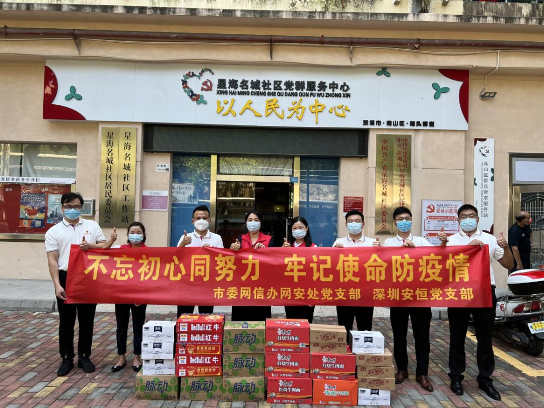 上周,深圳疫情呈現(xiàn)局部爆發(fā)態(tài)勢,再次牽動全國人民的心。為落實黨中央“疫情要防住、經(jīng)濟(jì)要穩(wěn)住、發(fā)展要安全”的重要要求,堅持“動態(tài)清零”總方針不猶豫不動搖,同時積極發(fā)揮廣大黨員干部“動”起來的責(zé)任擔(dān)當(dāng)要求,深圳安恒黨支部聯(lián)合深圳市委網(wǎng)信辦網(wǎng)安處黨支部共同開展一場戰(zhàn)“疫”黨建活動,用實際行動助力深圳社區(qū)疫情防控工作。在了解到南頭街道四個社區(qū)——南頭城社區(qū)、大汪山社區(qū)、星海名城社區(qū)、蓮城社區(qū)需要支援和幫助后,他們快速集結(jié)力量,采購生活物資,頂著烈日高溫,為這四個社區(qū)送去生活上的物資幫助,同時為服務(wù)社區(qū)疫情防控工作的一線抗疫人員送上夏日清涼,為深圳抗疫阻擊戰(zhàn)貢獻(xiàn)綿薄之力。