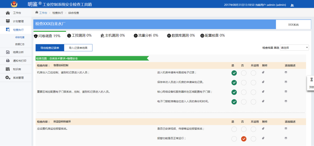 使用工控安全檢查工具箱設(shè)備,利用現(xiàn)有網(wǎng)絡(luò)分別在企業(yè)資源側(cè)、工業(yè)匯聚側(cè)和各閘壩側(cè)進(jìn)行工業(yè)現(xiàn)場安全情況的檢查與巡檢工作,便于及時(shí)發(fā)現(xiàn)網(wǎng)絡(luò)內(nèi)的新增資產(chǎn)、安全風(fēng)險(xiǎn),全面掌握水利工控系統(tǒng)安全狀況,建立對(duì)應(yīng)的安全基線,為加強(qiáng)風(fēng)險(xiǎn)管理、安全防護(hù)建設(shè)提供重要的依據(jù)。