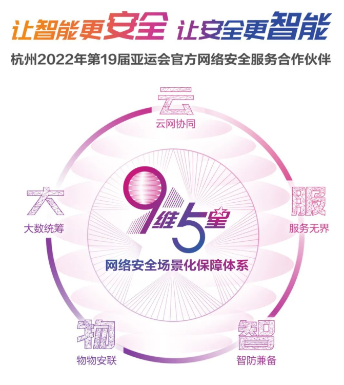 此外,安恒信息為更好的保障亞運會網絡安全工作重磅推出的“九維五星”網絡安全場景化保障體系,即通過專業(yè)化統(tǒng)籌設計、實戰(zhàn)化防護體系、全面化網絡保障、迅捷化應急響應、彈性化安全管控、精益化分析研判、系統(tǒng)化流程閉環(huán)、智能化安全協(xié)同、生態(tài)化分工協(xié)作九個維度,定制專屬的“云、大、物、智、服”場景化一攬子網絡安全服務,也將試應用于此次“韻味杭州”2022年黃龍體育中心全國體操系列賽。