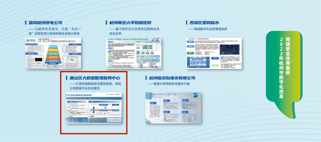 近日,在2022年杭州市暨西湖區(qū)網(wǎng)絡安全宣傳周,2022年杭州市數(shù)字化改革網(wǎng)絡安全優(yōu)秀案例揭曉。由安恒信息與杭州市蕭山區(qū)大數(shù)據(jù)管理服務中心聯(lián)合成立的“蕭山區(qū)數(shù)據(jù)安全聯(lián)合實驗室”打造的終端數(shù)據(jù)安全管控系統(tǒng)入選優(yōu)秀案例。