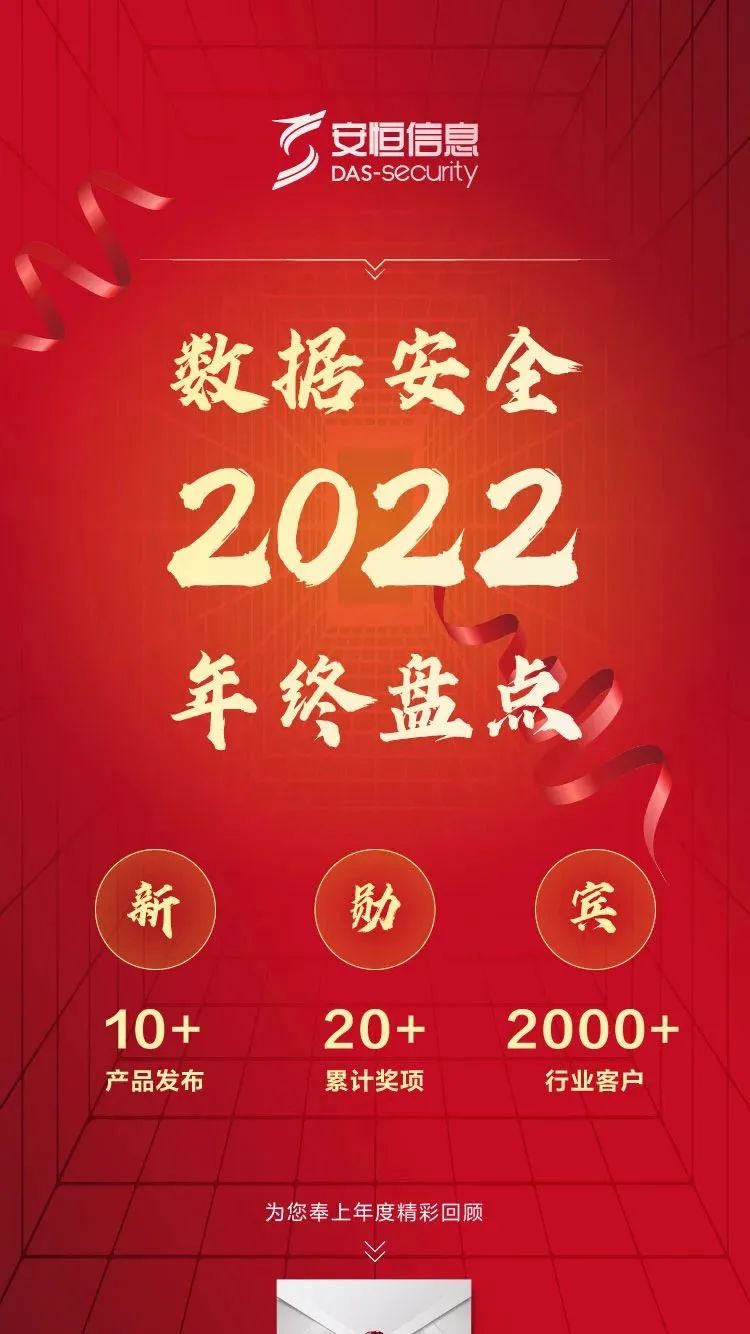 2022年,安恒信息數(shù)據(jù)安全全年累計發(fā)布新型產(chǎn)品10+,收獲獎項20+,服務(wù)客戶2000+!讓我們回溯這一年的春華秋實,盤點這一年的點點滴滴。