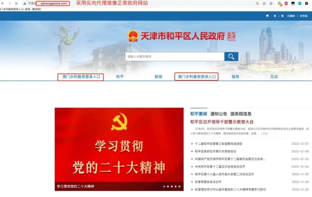 黑灰產(chǎn)網(wǎng)站反向代理天津市和平區(qū)人民政府