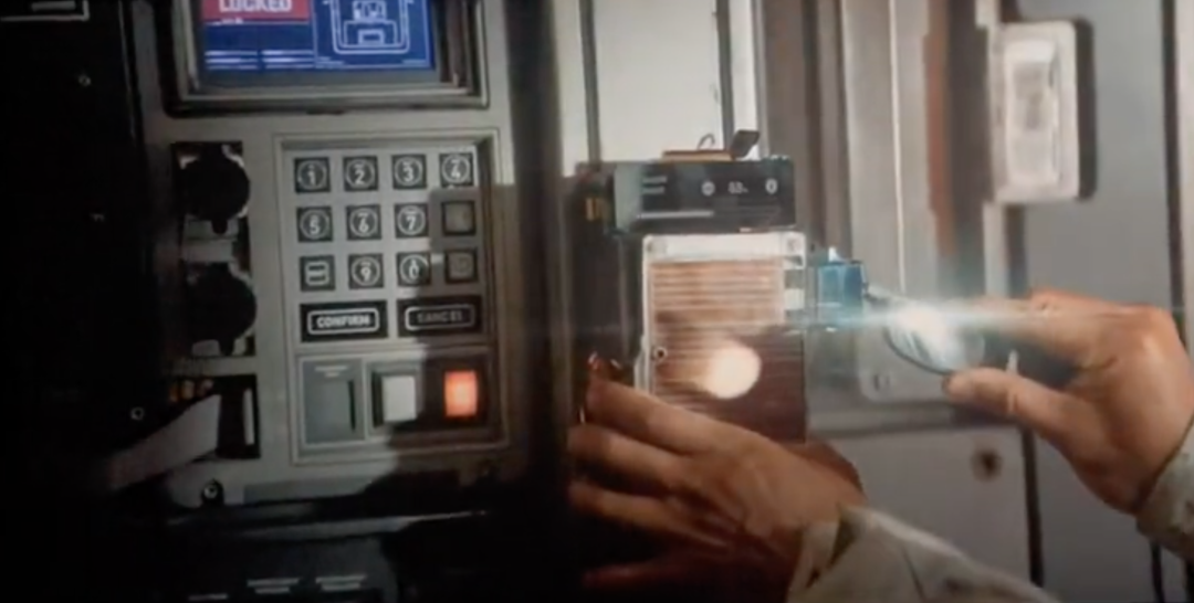 仔細(xì)觀察,此時(shí)的劉培強(qiáng)將鏡片當(dāng)作放大鏡使用,給太陽(yáng)能電池面板加熱。通過(guò)特斯拉線(xiàn)圈原理,產(chǎn)生電磁干擾,成功打開(kāi)門(mén)禁。