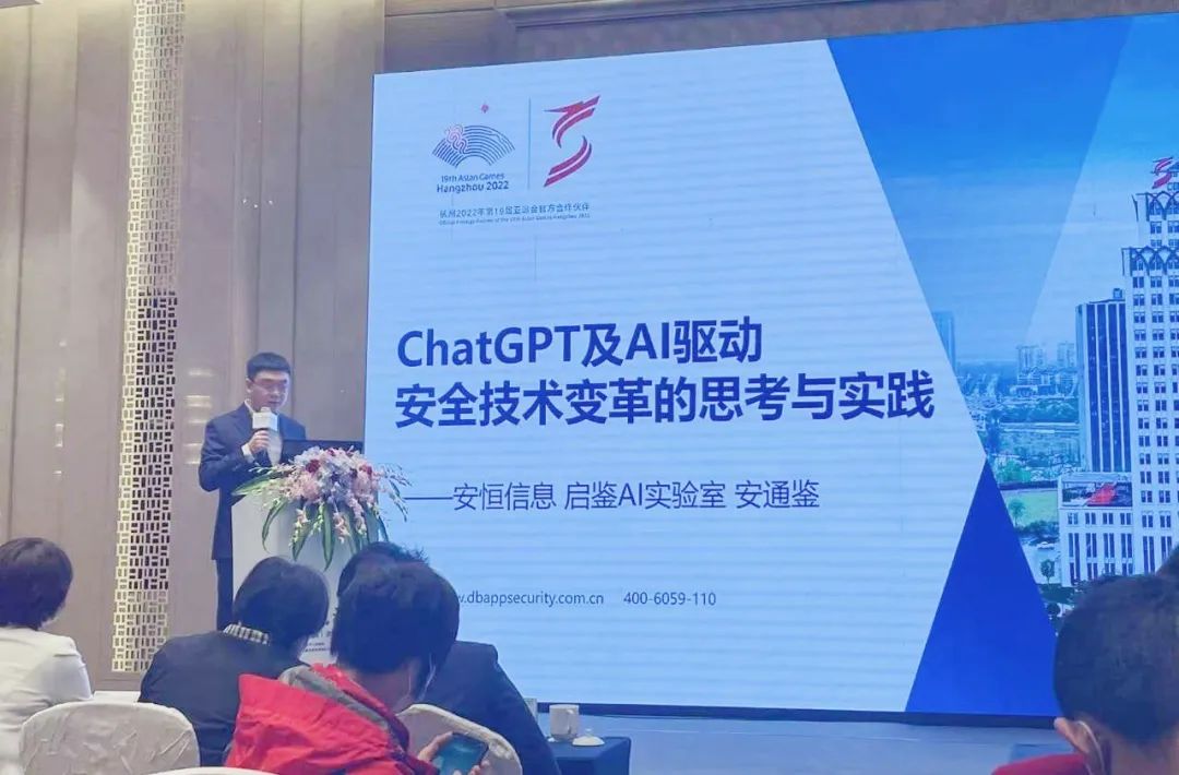 安恒信息中央研究院啟鑒實驗室(AI安全)主任安通鑒博士受邀參加“AI助力,科技新升”論壇,并作《ChatGPT及AI驅(qū)動安全技術(shù)變革的思考與實踐》主題分享。