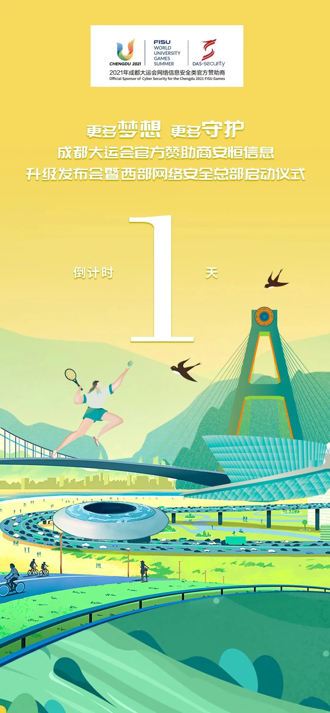 “更多夢想 更多守護——成都大運會官方贊助商安恒信息升級發(fā)布會暨西部網(wǎng)絡(luò)安全總部啟動儀式”將于4月7日舉行。更多精彩,敬請期待。