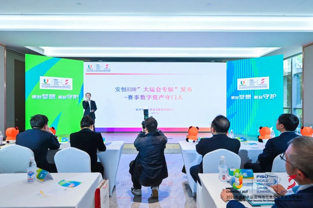 4月7日,成都大運(yùn)會(huì)(網(wǎng)絡(luò)信息安全類)官方贊助商安恒信息升級(jí)發(fā)布會(huì)暨“西部網(wǎng)絡(luò)安全總部”啟動(dòng)儀式在成都高新區(qū)安恒大廈舉行。安恒信息成為了從成都大運(yùn)會(huì)的“賽事合伙人”進(jìn)而成為“城市合伙人”的成功典范,創(chuàng)造了數(shù)個(gè)“首個(gè)”?,F(xiàn)場(chǎng),安恒EDR“大運(yùn)會(huì)專版”重磅發(fā)布,安恒信息副總裁劉思宇作專題匯報(bào)。