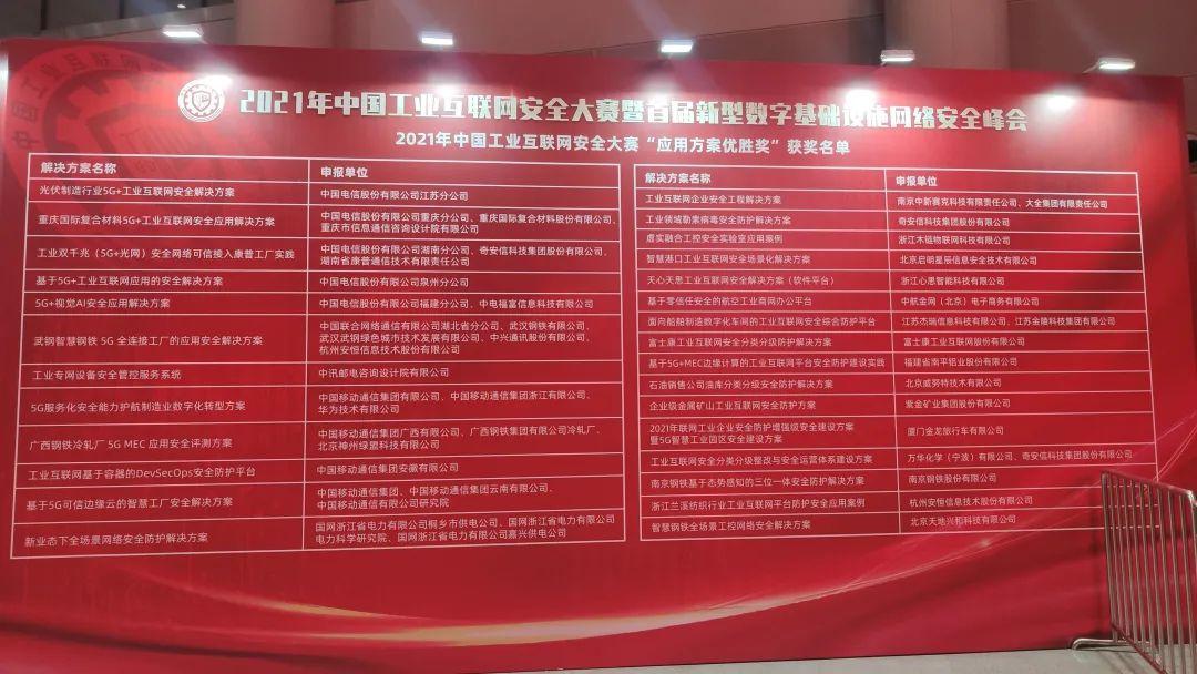 會議期間還公布了2021年中國工業(yè)互聯(lián)網(wǎng)安全大賽“應用方案優(yōu)勝獎”,安恒信息申報的兩個項目從眾多方案中脫穎而出,雙雙獲獎。