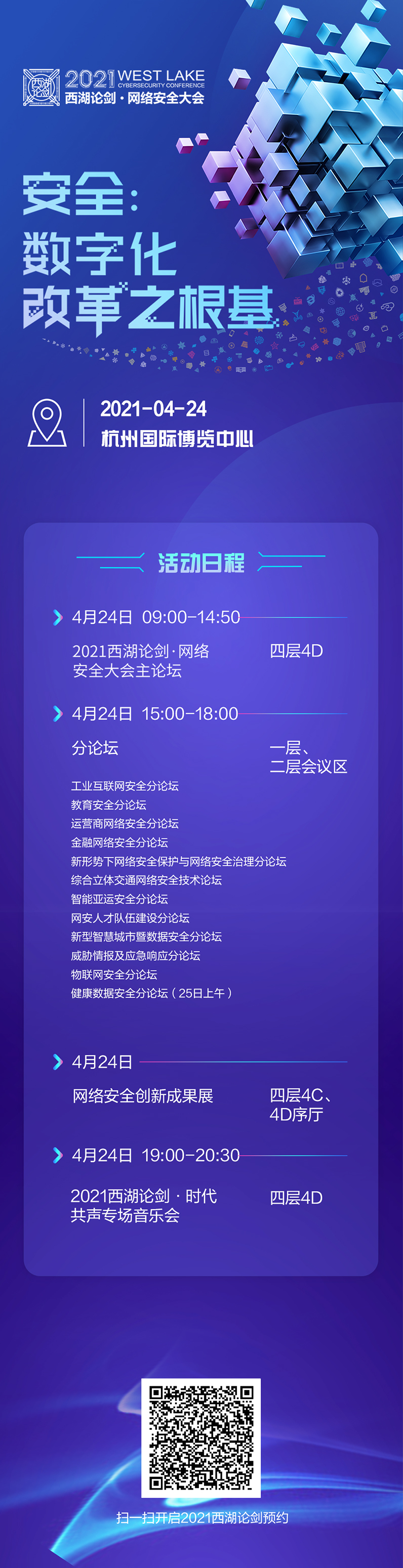 “十四五”開局之際,作為2021年國內(nèi)首場(chǎng)大型標(biāo)志性網(wǎng)絡(luò)安全線下大會(huì),緊抓數(shù)字化改革重要?dú)v史進(jìn)程,圍繞“安全:數(shù)字化改革之根基”這一主題,設(shè)立一場(chǎng)主論壇、十二場(chǎng)分論壇和一場(chǎng)網(wǎng)絡(luò)安全展覽。大會(huì)將于4月24日在杭州國際博覽中心舉行,屆時(shí)將進(jìn)行線上同步直播。