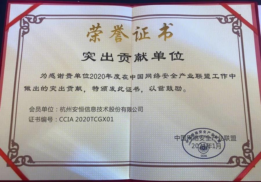 安恒信息榮獲中國網(wǎng)絡(luò)安全產(chǎn)業(yè)聯(lián)盟“突出貢獻單位”和“技術(shù)支持單位”稱號