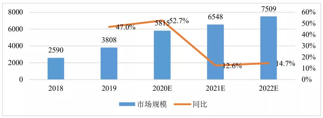 AIoT產(chǎn)業(yè)是多種技術(shù)融合,賦能各行業(yè)的產(chǎn)業(yè),整體市場(chǎng)潛在空間超十萬(wàn)億元。艾瑞咨詢數(shù)據(jù)顯示,2019年中國(guó)AIoT產(chǎn)業(yè)總產(chǎn)值為3808億元,預(yù)計(jì)2020年達(dá)5815億元,同比增長(zhǎng)52.7%,高增長(zhǎng)主要得益于5G等新技術(shù)規(guī)劃化商用和AIoT應(yīng)用在消費(fèi)和公共事業(yè)等領(lǐng)域大規(guī)模落地。未來(lái)三年,在消費(fèi)端和政策驅(qū)動(dòng)端應(yīng)用市場(chǎng)的繼續(xù)推動(dòng)下,AIoT產(chǎn)業(yè)仍將保持高速增長(zhǎng)。長(zhǎng)期來(lái)看,產(chǎn)業(yè)驅(qū)動(dòng)應(yīng)用市場(chǎng)潛力巨大,將成為遠(yuǎn)期增長(zhǎng)點(diǎn)。