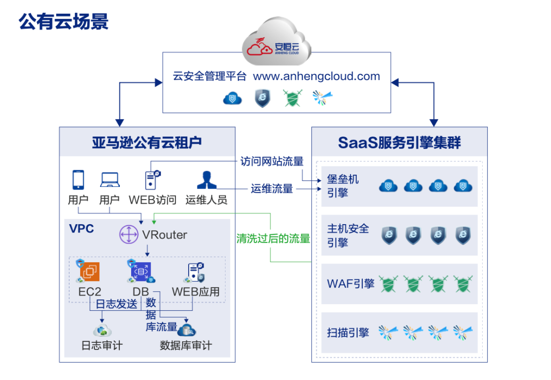 用戶采用亞馬遜云構建了自己的業(yè)務系統,需要對業(yè)務系統進行統一的安全等保建設。安恒云采用云端共享SaaS服務+本地專享AMI結合的模式,幫助客戶快速構建滿足等保2.0安全要求的防護體系。安恒云在線SaaS服務在全國部署了52個防護節(jié)點,即開即用,輕松實現安全的統一建設、統一管理。