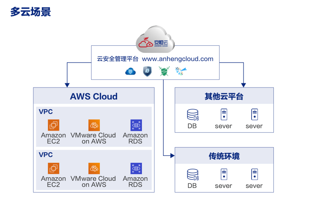 安恒云等保解決方案覆蓋多云、混合云、公有云場景。