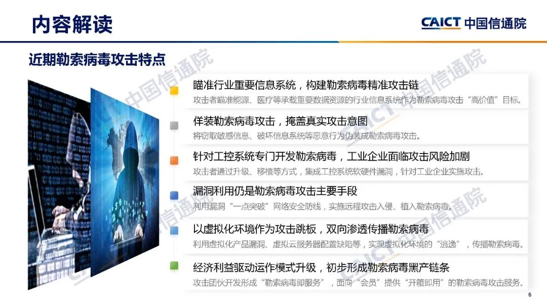 下一步,中國信通院將深刻落實總體國家安全觀,立足底線思維,聚焦勒索病毒等重大網絡攻擊風險防范應對,加強風險研究前瞻布局和應對指導,增強國家網絡安全綜合實力,筑牢適應新時代的網絡安全防線,為數字經濟健康、有序、安全發(fā)展保駕護航。