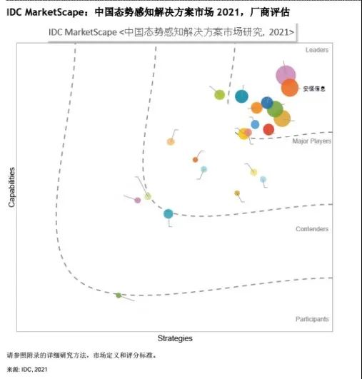 據(jù)《IDC MarketScape: 中國態(tài)勢感知解決方案市場2021,廠商評估》報告繪制