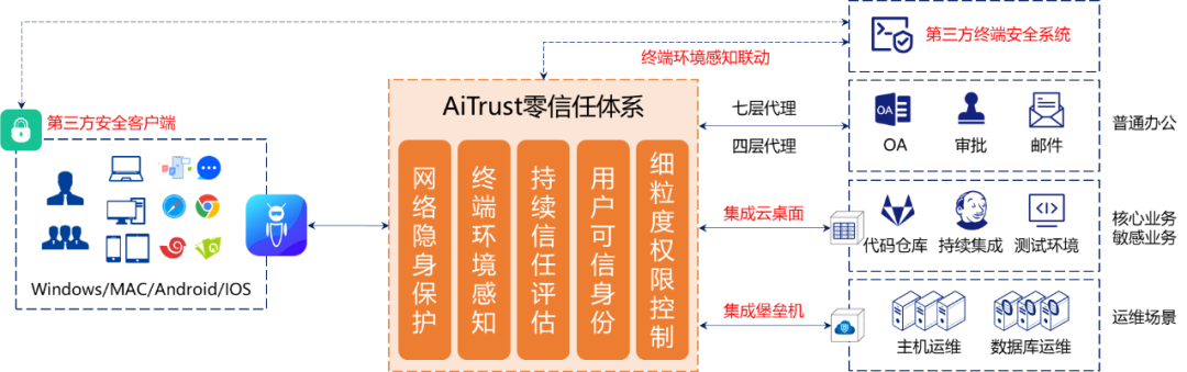 零信任把安全架構(gòu)延伸到用戶終端上,有更強(qiáng)的控制和感知能力;