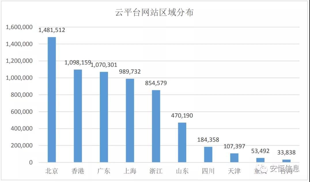 根據(jù)對云平臺網(wǎng)站區(qū)域進(jìn)行分析,發(fā)現(xiàn)主要分布在北京、香港、廣東等區(qū)域。