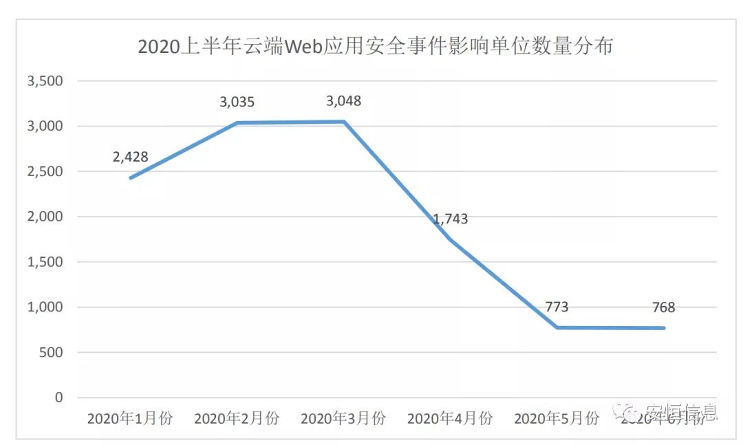 2020年上半年,主要針對網(wǎng)頁篡改、不良信息和僵尸網(wǎng)站等進(jìn)行監(jiān)測,累計發(fā)現(xiàn)云端Web應(yīng)用安全事件數(shù)量18257起,覆蓋單位10324個。