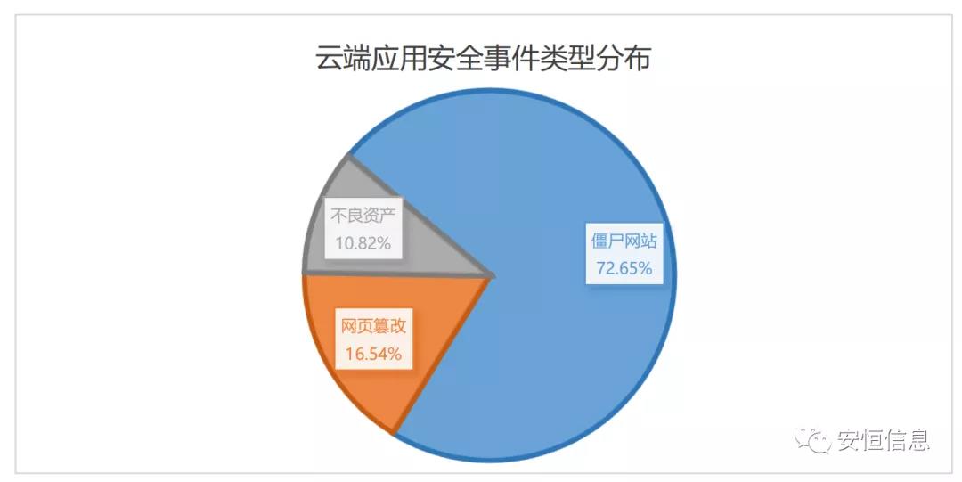 對云端Web應(yīng)用存在的安全事件類型進(jìn)行統(tǒng)計,主要是以僵尸網(wǎng)站為主。