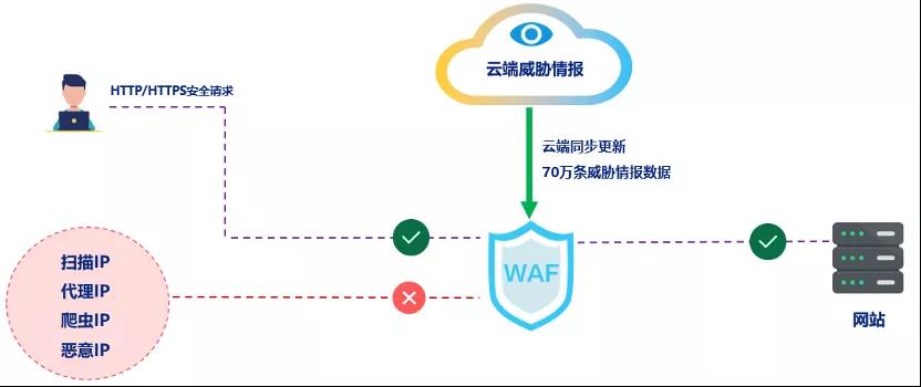 云端威脅情報實時更新,快速檢測僵尸IP、掃描IP、肉雞IP等惡意IP等對業(yè)務系統(tǒng)的可疑訪問行為。