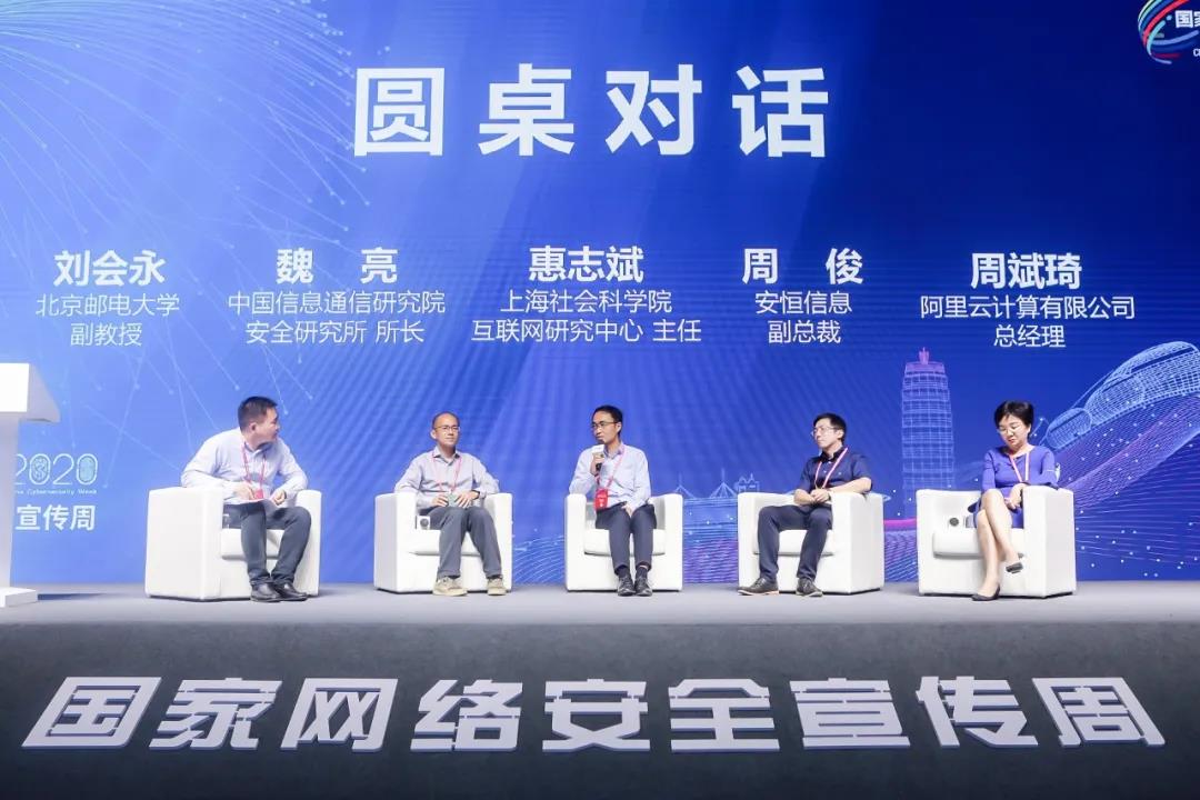 作為本次論壇精彩亮點(diǎn)之一,圓桌對(duì)話由北京郵電大學(xué)副教授劉會(huì)永主持,上海社會(huì)科學(xué)院互聯(lián)網(wǎng)研究中心主任惠志斌、中國(guó)信息通信研究院安全研究所所長(zhǎng)魏亮、安恒信息副總裁周俊、阿里云計(jì)算有限公司總經(jīng)理周斌琦聯(lián)袂登臺(tái),針對(duì)智慧城市數(shù)據(jù)資源規(guī)劃,數(shù)字城市治理,信息共享交換的安全等話題進(jìn)行對(duì)話。