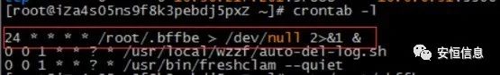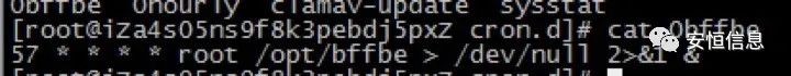 3、通過對該服務(wù)器進(jìn)行病毒查殺,掃描出病毒文件/root/.bffbe和/opt/bffbe。