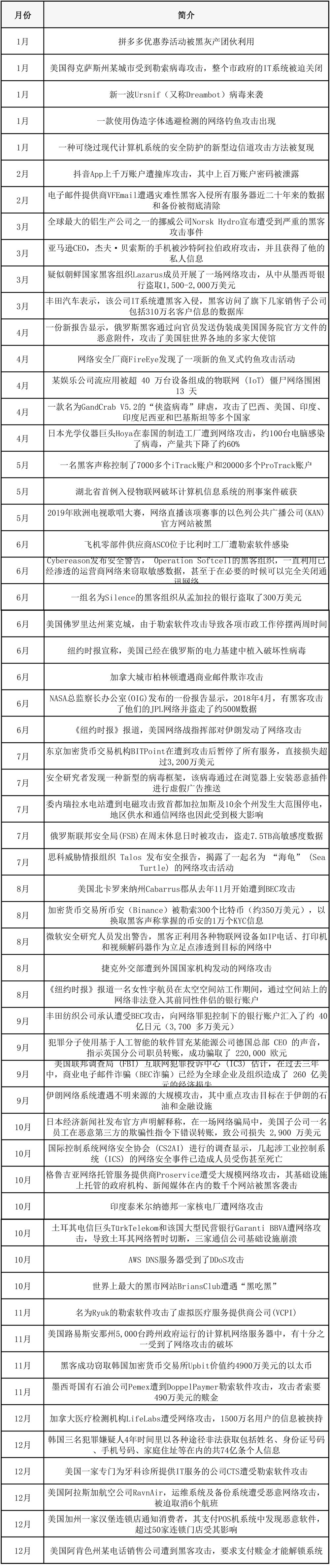 2019年網(wǎng)絡(luò)攻擊事件一覽表