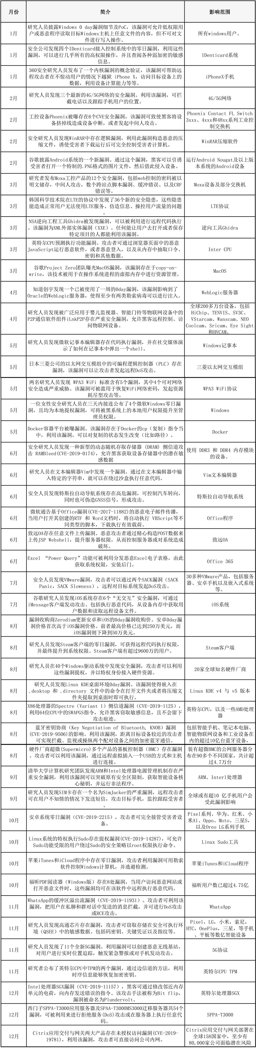 2019年漏洞事件一覽表