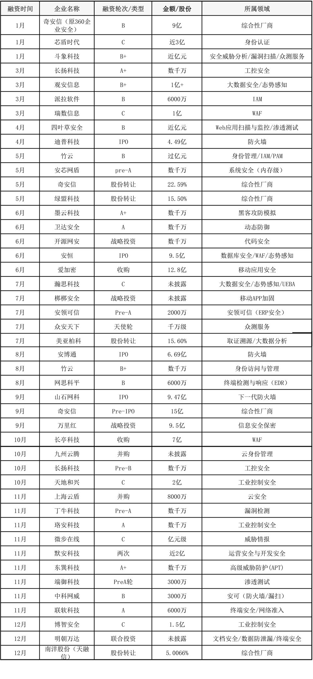 2019年國內(nèi)安全公司融資并購一覽