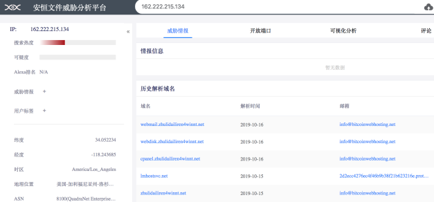 并且通過安恒文件威脅分析平臺分析關(guān)聯(lián)到另一個域名zhulidailiren4winnt[.]net也是主模塊回連域名。