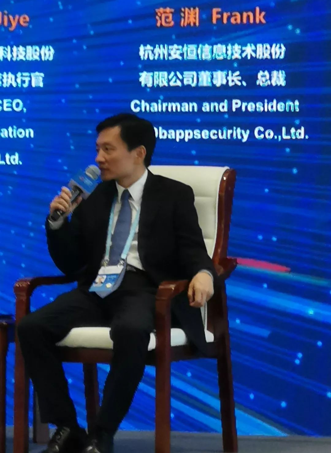 安恒信息董事長范淵受邀參加論壇,并與美國信息產(chǎn)業(yè)機構(gòu)總裁繆萬德、西門子(中國)副總裁胡建鈞、綠盟科技董事長沈繼業(yè)、天融信董事長于海波共同參與專題對話討論。