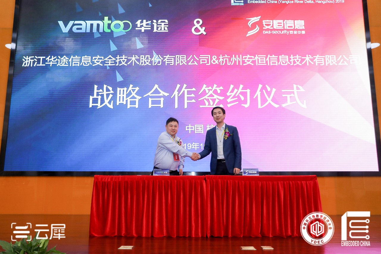在網(wǎng)絡(luò)空間安全與數(shù)字化經(jīng)濟(jì)高峰論壇中,華途股份副總裁李燁龍、杭州安恒信息技術(shù)股份有限公司高級(jí)副總裁馮旭杭分別代表各自公司,簽署戰(zhàn)略合作框架協(xié)議。