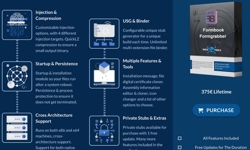 FormBook從2016年開始就在國外黑客論壇上進(jìn)行售賣,但并不直接售賣木馬構(gòu)建器,而只提供操作界面,相當(dāng)于購買惡意軟件即服務(wù),即攻擊者可以根據(jù)其所需參數(shù)購買已編譯的惡意軟件。