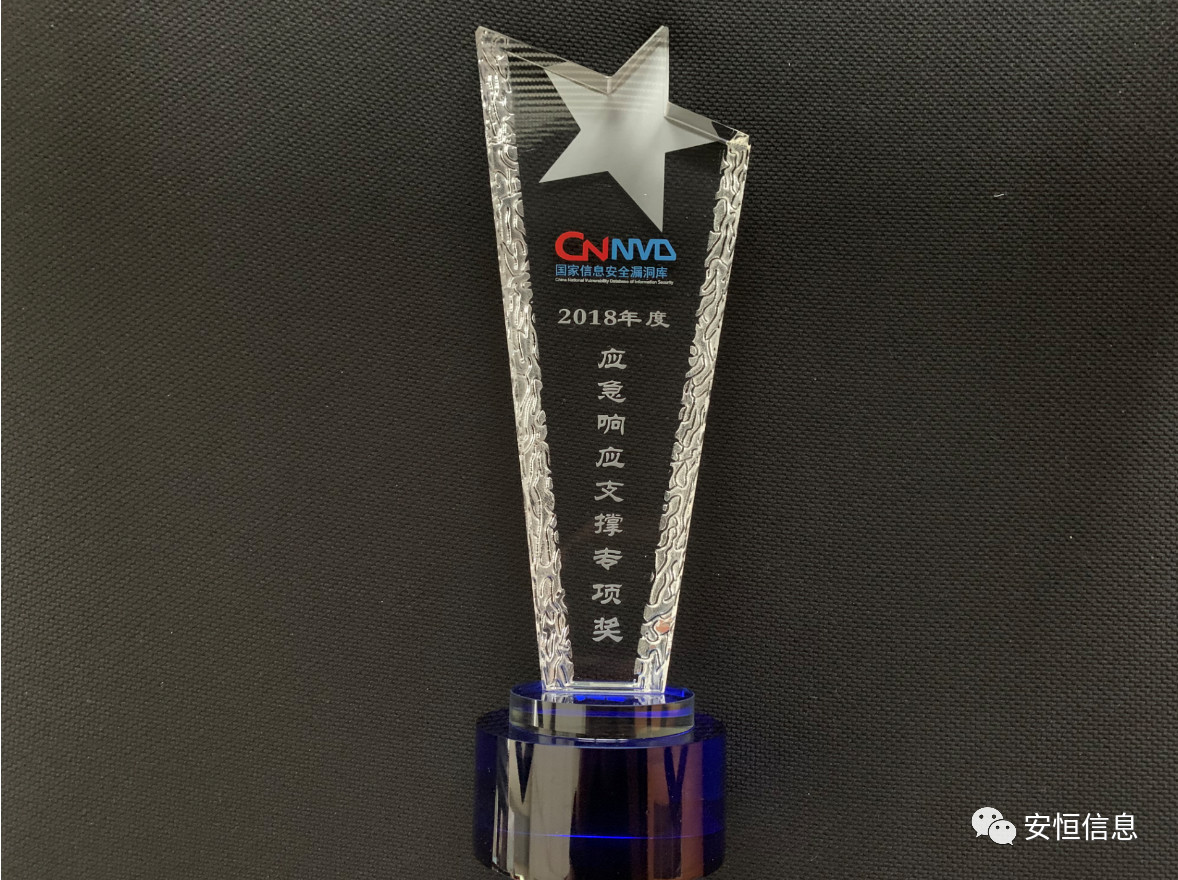 安恒信息榮獲“2018年度應(yīng)急響應(yīng)支撐專項(xiàng)獎(jiǎng)”