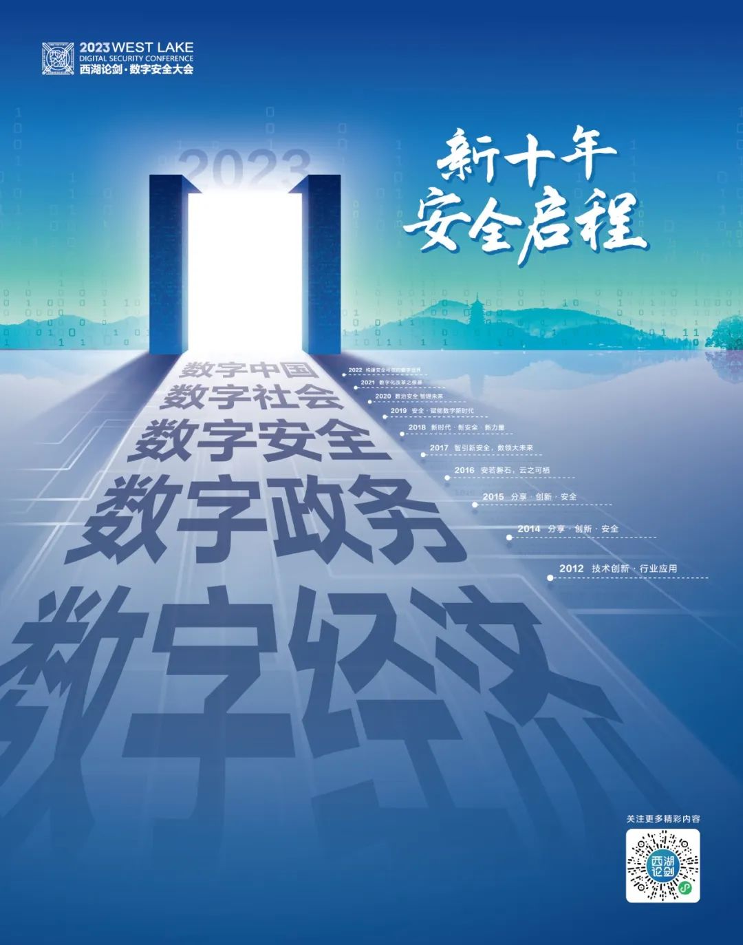 2023年亦是西湖論劍·網(wǎng)絡(luò)安全大會(huì)邁向“新十年”的起點(diǎn)。在這場(chǎng)數(shù)字中國(guó)建設(shè)的大考中,“西湖論劍·網(wǎng)絡(luò)安全大會(huì)”將正式升級(jí)為“西湖論劍·數(shù)字安全大會(huì)”,致力于攜手政府部門(mén)、科研院所,以及數(shù)字生態(tài)的參與者、構(gòu)建者、守護(hù)者,共同探尋數(shù)字安全在數(shù)字中國(guó)建設(shè)中數(shù)字政務(wù)、數(shù)字經(jīng)濟(jì)、數(shù)字社會(huì)等場(chǎng)景的發(fā)展之道,譜寫(xiě)新時(shí)代數(shù)字中國(guó)建設(shè)的安全答卷。