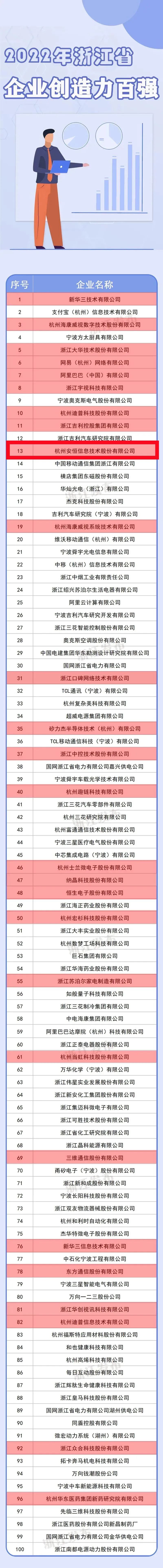 喜報!安恒信息入選2022年浙江省企業(yè)創(chuàng)造力百強