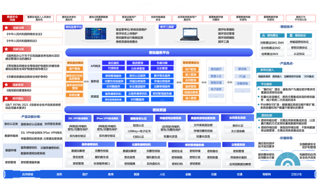 目前,安恒信息擁有4大類10余款商用密碼產(chǎn)品,20多項商用密碼相關(guān)技術(shù)專利,70多項商用密碼軟件著作權(quán),可以為用戶提供完整的商用密碼解決方案。