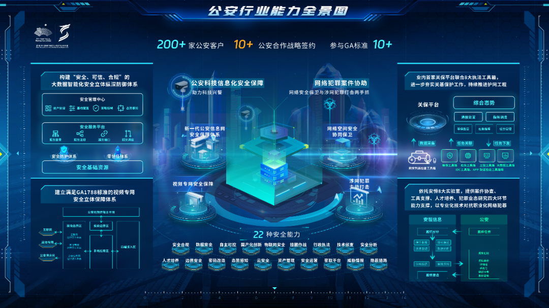 三、圍繞公安網(wǎng)絡(luò)安全建設(shè)、網(wǎng)絡(luò)安全監(jiān)管協(xié)同、犯罪偵查打擊三大方向與10+公安深度合作,落地聯(lián)合實驗室,推動公安打造科技興警協(xié)同工作格局。