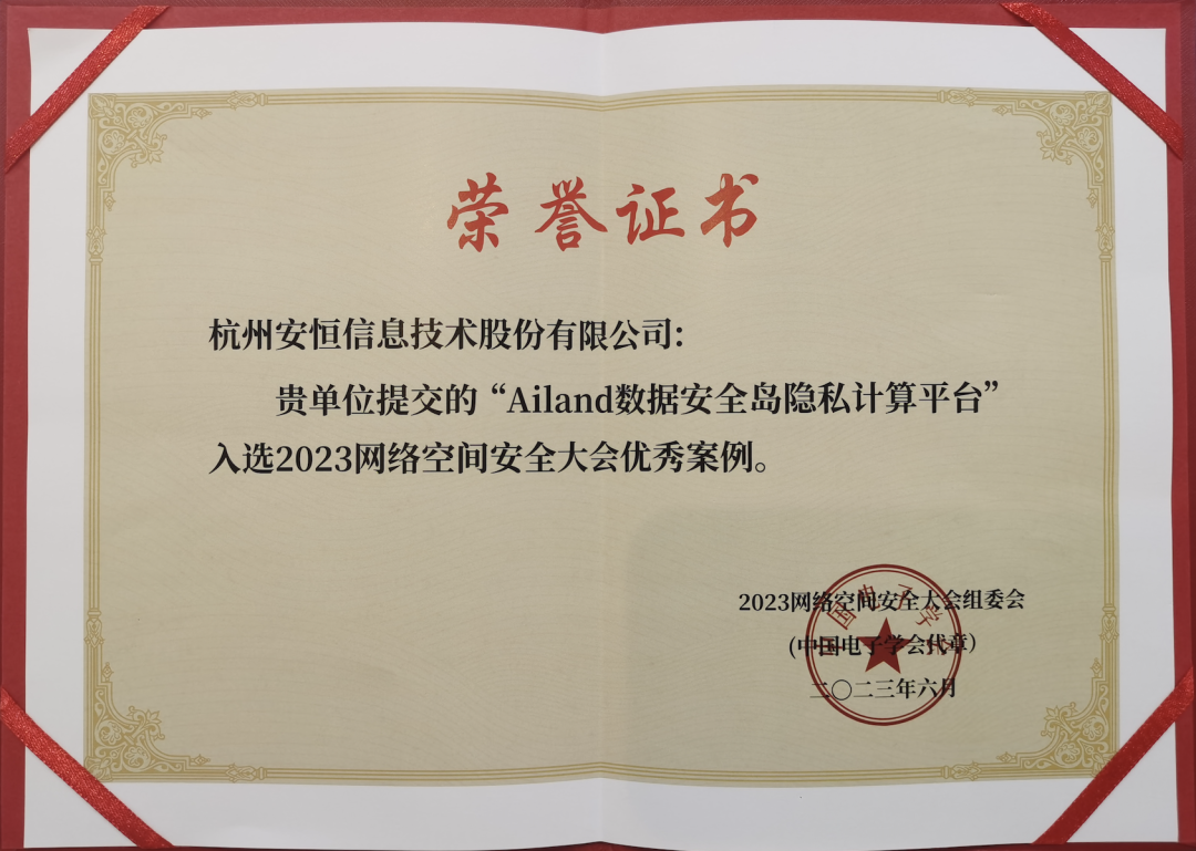 6月2日-3日,2023網(wǎng)絡(luò)空間安全大會(huì)在杭州高新區(qū)(濱江)舉行。安恒信息提報(bào)的“基于仿真實(shí)戰(zhàn)訓(xùn)練的‘技產(chǎn)學(xué)研’融合創(chuàng)新模式”和“AiLand數(shù)據(jù)安全島隱私計(jì)算平臺(tái)”入選2023網(wǎng)絡(luò)空間安全大會(huì)優(yōu)秀案例。?