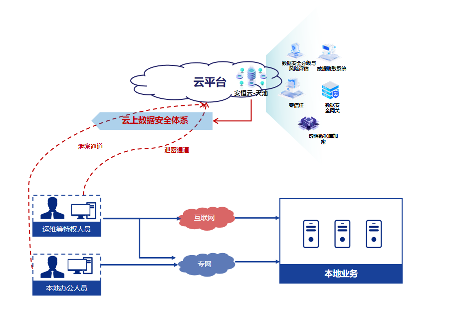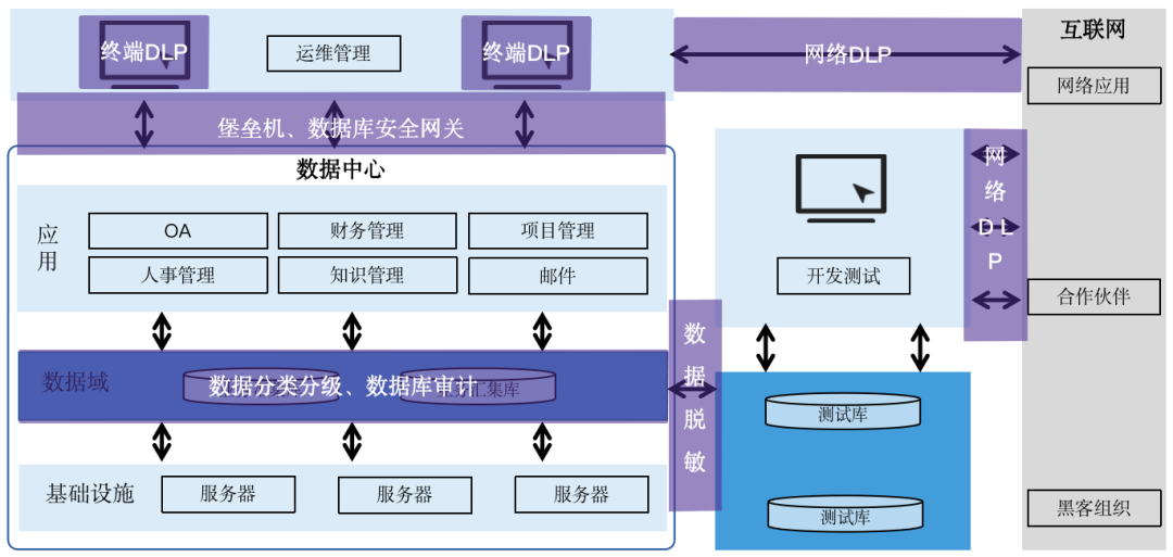 三是人員操作行為管控缺失,技術(shù)人員惡意操作、誤操作,操作過(guò)程無(wú)干預(yù),例如接觸敏感數(shù)據(jù)后,在非授權(quán)情況下下載到訪問(wèn)終端,并將終端上的敏感數(shù)據(jù)上傳至公有云上,造成敏感數(shù)據(jù)泄漏;例如開發(fā)測(cè)試人員直接獲取原始數(shù)據(jù)進(jìn)行業(yè)務(wù)開發(fā),未對(duì)敏感數(shù)據(jù)進(jìn)行去標(biāo)識(shí)化處理,導(dǎo)致敏感數(shù)據(jù)泄漏;