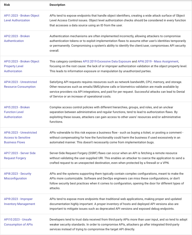OWASP Top 10 API Security Risks?