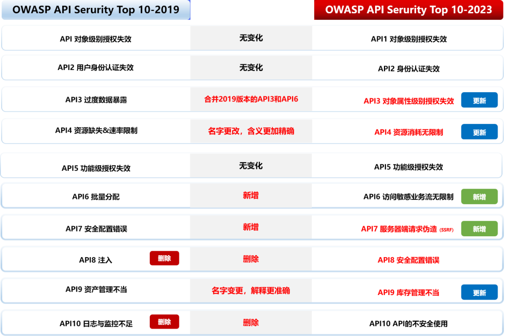 伴隨著全球數(shù)字經(jīng)濟的浪潮,API已然成為企業(yè)數(shù)字化轉(zhuǎn)型中連接萬物的”鑰匙”,可預見API數(shù)量將爆炸式增長。與此同時,API攻擊也越來越高頻出現(xiàn),對任何一家企業(yè)來說又需關注一項新的安全工程。OWASP為強調(diào)API安全的重要性,在2019年首次提出了API Security Top 10。后隨著安全產(chǎn)業(yè)實踐加深,于2023年發(fā)布了API Security Top 10(候選版)的內(nèi)容更新。該更新內(nèi)容進一步強調(diào)了API攻擊場景與Web攻擊的差異化,突出API權限管理、資產(chǎn)管理、業(yè)務風控及供應鏈問題。
