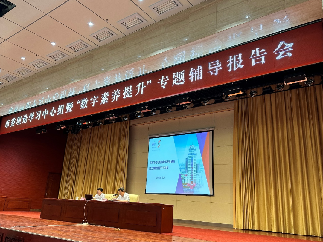 近日,山東省德州市委理論學習中心組暨“數(shù)字素養(yǎng)提升”專題輔導報告會舉行。德州市委書記、市人大常委會主任田衛(wèi)東,市政協(xié)主席卜祥聯(lián),市委副書記苑衍剛等市級領導出席報告會。安恒信息董事長范淵受邀出席報告會并作專題輔導報告,圍繞數(shù)字中國建設整體布局規(guī)劃、數(shù)字經(jīng)濟和數(shù)字安全方面作深入淺出的解讀。