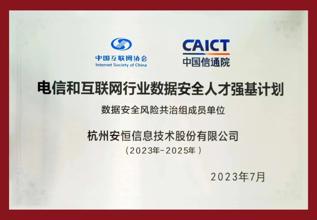 7月19日,2023中國互聯(lián)網(wǎng)大會(huì)“數(shù)據(jù)安全論壇”上,中國互聯(lián)網(wǎng)協(xié)會(huì)公布了“電信和互聯(lián)網(wǎng)行業(yè)數(shù)據(jù)安全人才強(qiáng)基計(jì)劃”數(shù)據(jù)安全風(fēng)險(xiǎn)共治組成員名單。安恒信息憑借在網(wǎng)絡(luò)安全領(lǐng)域的技術(shù)優(yōu)勢(shì)和人才培養(yǎng)體系的創(chuàng)新成功入選數(shù)據(jù)安全風(fēng)險(xiǎn)共治組成員單位。
