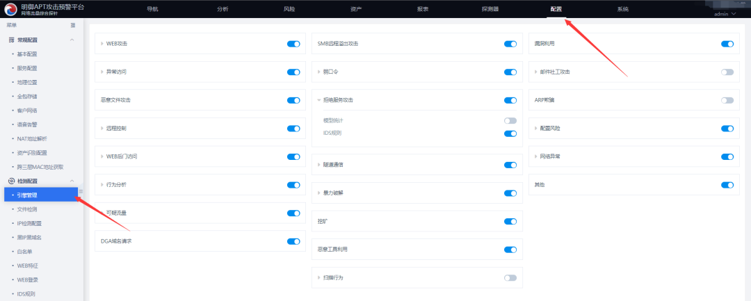 (以下以安恒明御APT攻擊預(yù)警平臺(tái)為例,AiNTA流量審計(jì)分析系統(tǒng)配置流程相似)