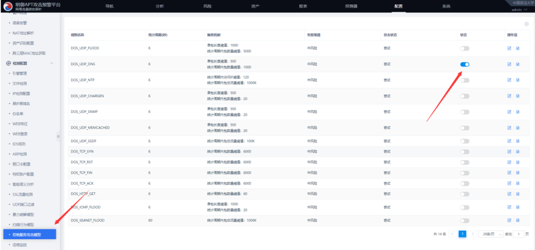 通過(guò)流量檢測(cè)設(shè)備對(duì)模型、閾值做定制化調(diào)整,精準(zhǔn)捕獲攻擊者所請(qǐng)求的高頻域名,實(shí)現(xiàn)此類(lèi)攻擊的有效檢測(cè)。