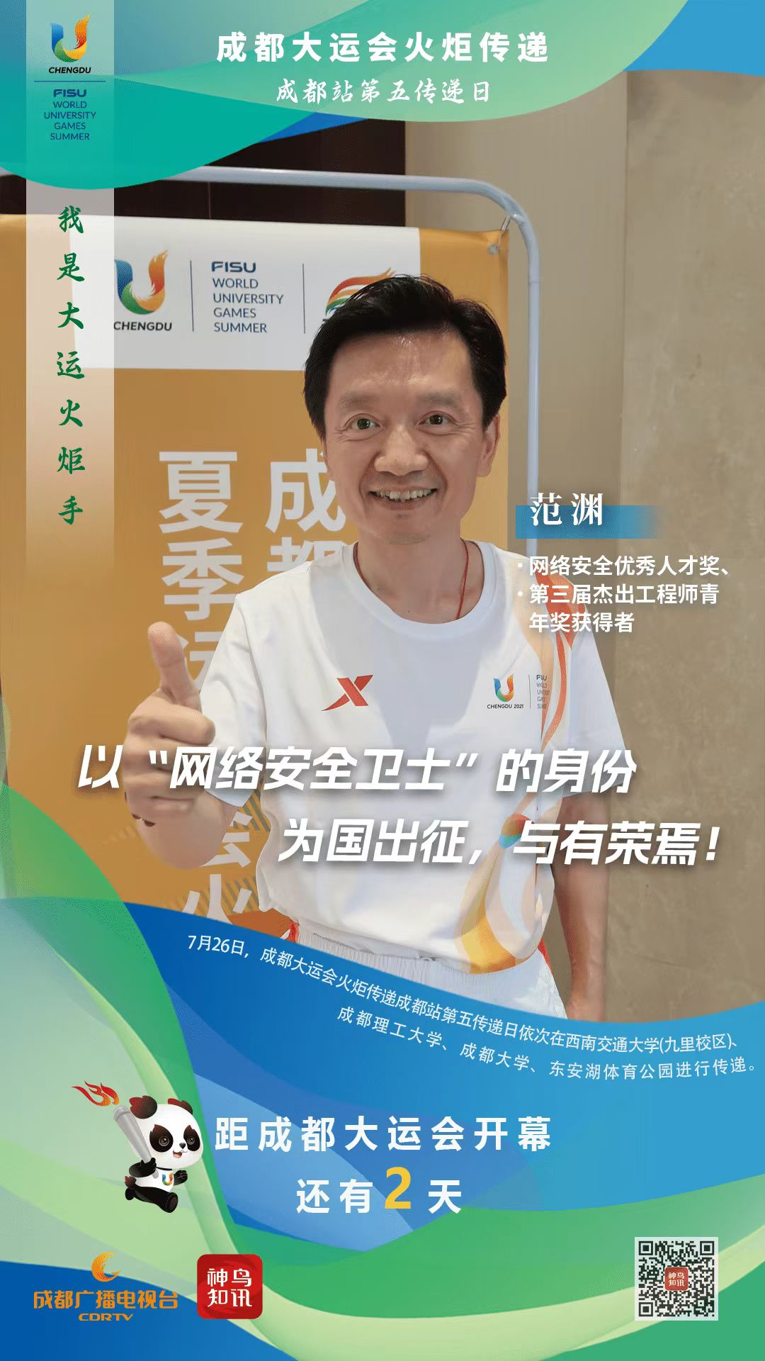 深耕網(wǎng)絡安全數(shù)十年的范淵,是登上全球頂級信息安全大會BLACKHAT(黑帽子) 進行演講的第一個中國人,也曾受邀參加2016年習近平總書記主持召開的首屆網(wǎng)絡安全與信息化領(lǐng)導小組座談會。此次受邀作為網(wǎng)絡安全領(lǐng)域代表參與火炬?zhèn)鬟f,范淵表示,倍感榮耀。