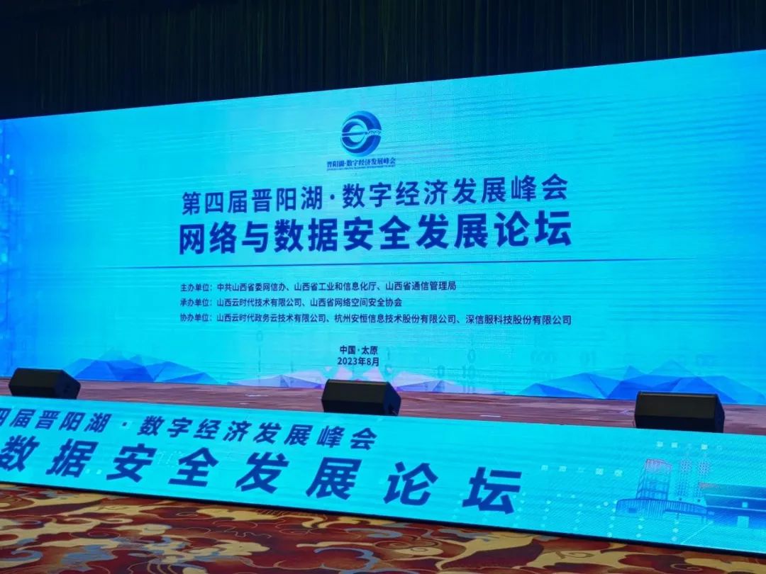 同時(shí),“第四屆晉陽湖·數(shù)字經(jīng)濟(jì)發(fā)展峰會(huì)” 網(wǎng)絡(luò)與數(shù)據(jù)安全發(fā)展論壇成功舉辦,本次論壇由中共山西省委網(wǎng)信辦、山西省工業(yè)和信息化廳、山西省通信管理局主辦,山西云時(shí)代技術(shù)有限公司、山西省網(wǎng)絡(luò)空間安全協(xié)會(huì)承辦,安恒信息參與協(xié)辦。